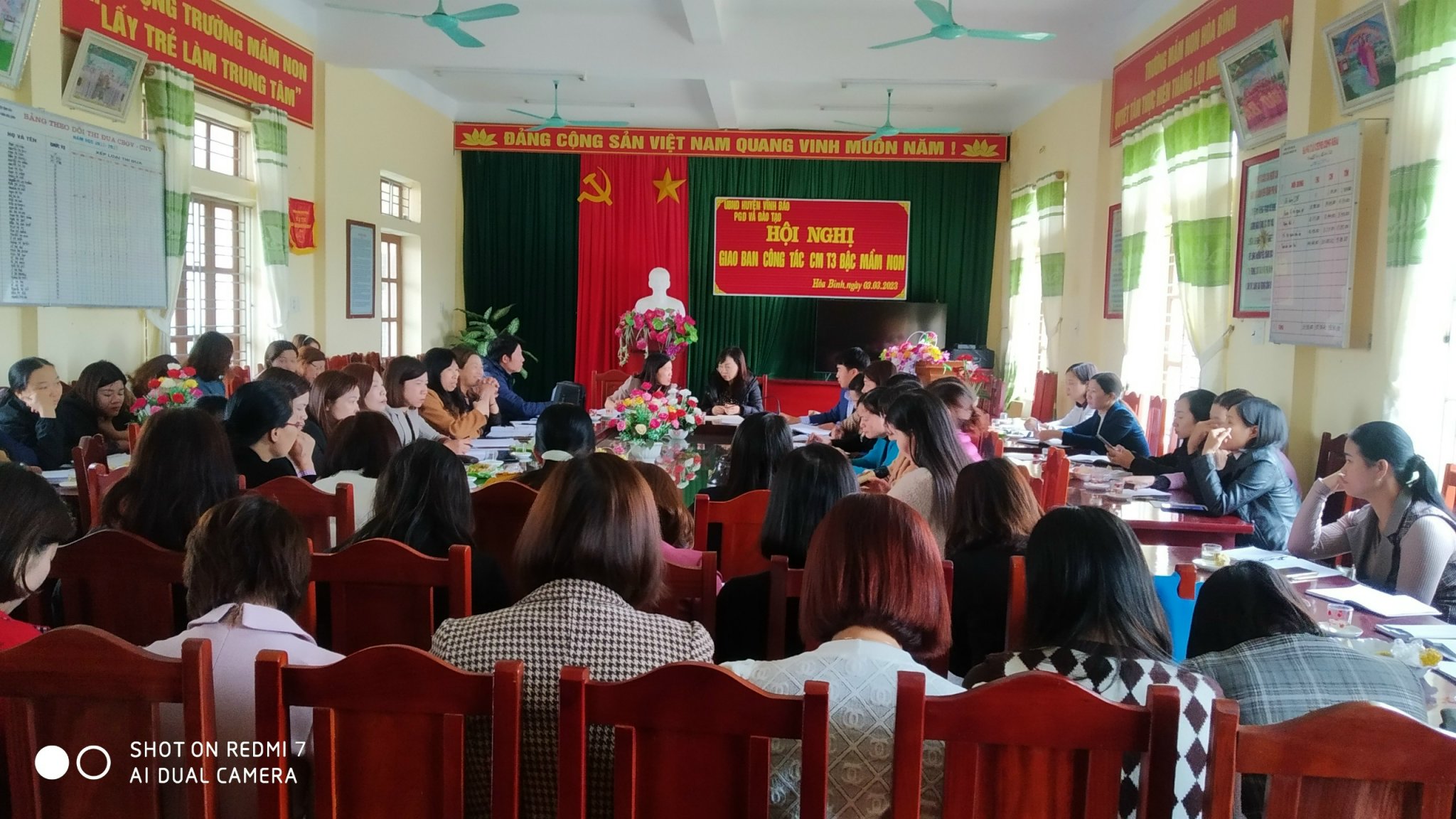 Ngày 3/3/2023 trường mầm non Hòa Bình vinh dự được đón các đồng chí lãnh đạo, chuyên viên và cán bộ quản lý của 30 trường mầm non về giao ban công tác chuyên môn tại trường. Buổi giao ban đã được lãnh đạo, chuyên viên PGD đánh giá cao và ghi nhận những kết quả mà cô và trò nhà trường đã thực hiện. Đặc biệt là kết quả thực hiện chương " Tôi yêu Việt Nam"; thực hiện chuyên đề xây dựng trường mầm non " lấy trẻ làm trung tâm" và chuyên đề an toàn an ninh trường học.