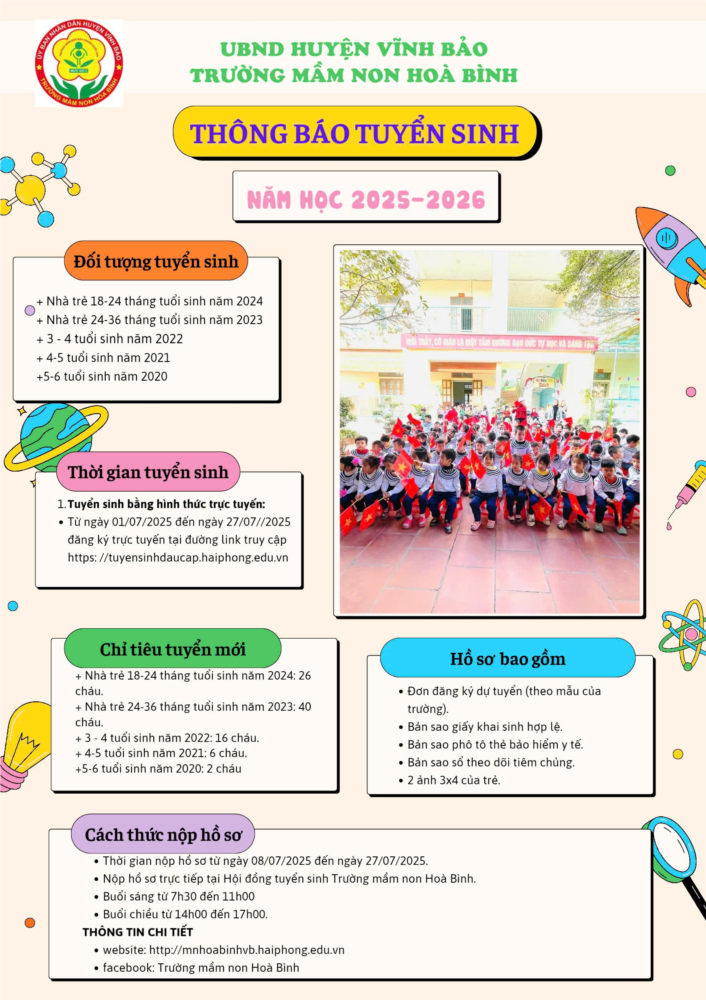 🏫Trường mầm non Hòa Bình xin gửi tới các bậc cha mẹ trẻ em thông báo tuyển sinh 2025-2026 như sau: